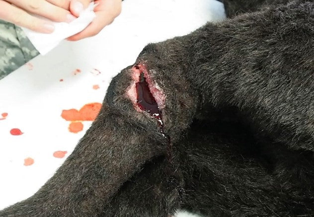 Designed in partnership with the Department of Defense (DoD), K9 Diesel is a state-of-the-art skills trainer that simulates active breathing, audio queues, and over 28 different features and medical intervention sites. Each training site is designed to replicate the look, feel, and function of actual medical procedures. Interchangeable limbs and injuries provide greater flexibility to vary wound patterns. K9 Diesel allows learners to perform a wide range of critical life-saving tasks with an incredibly realistic experience.